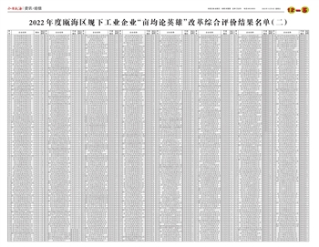 2022年度瓯海区规下工业企业“亩均论英雄”改革综合评价结果名单(二)