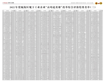 2022年度瓯海区规下工业企业“亩均论英雄”改革综合评价结果名单(三)