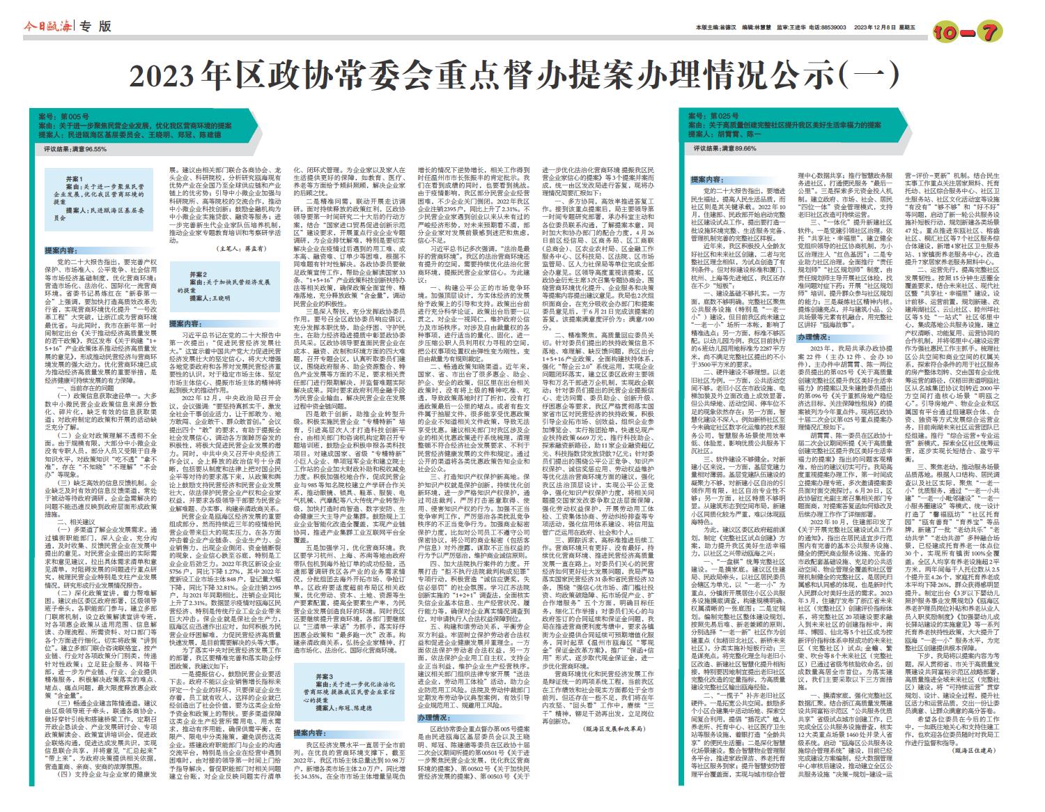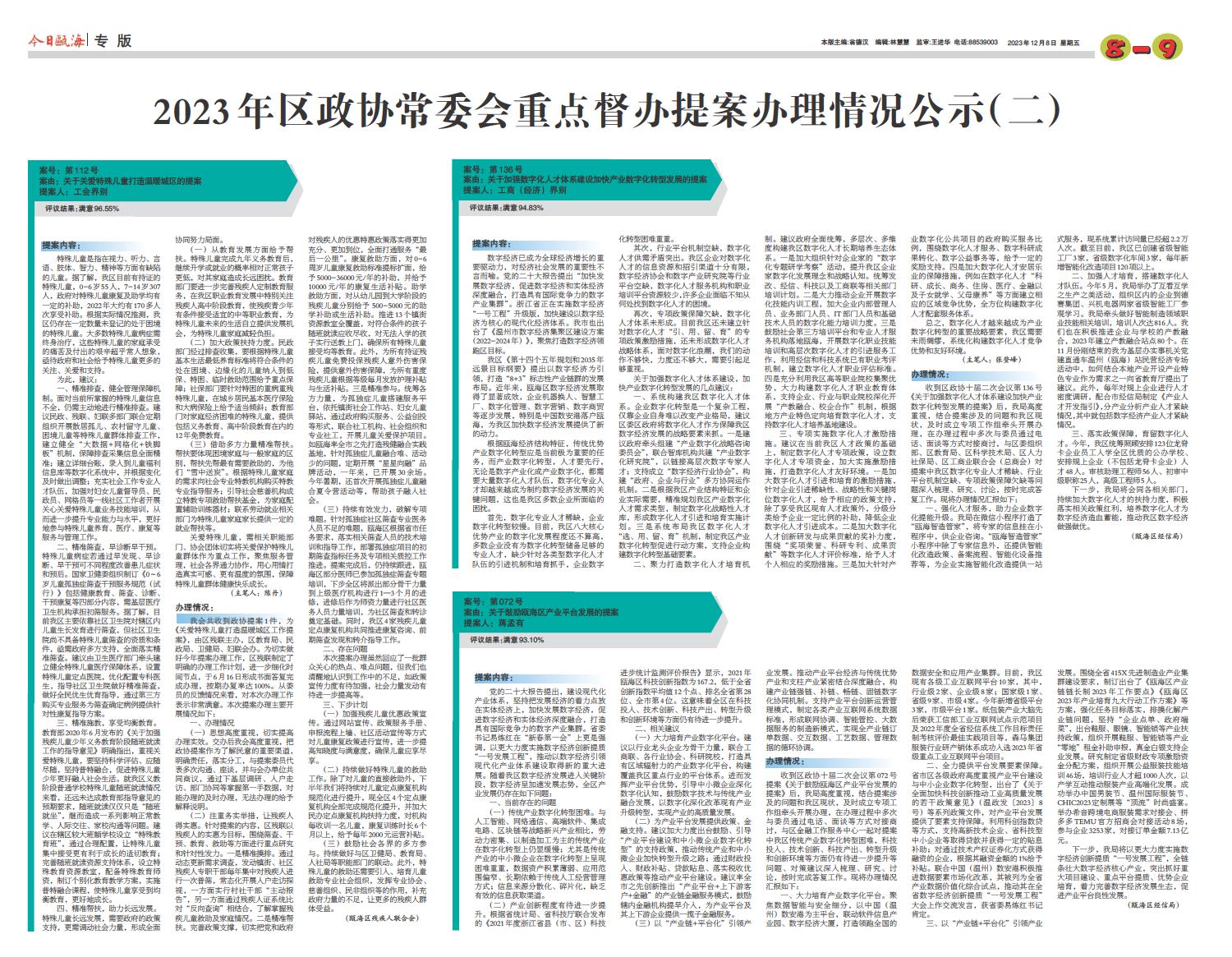 2023年区政协常委会重点督办提案办理情况公示(二)
