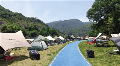 上周末,市民潘女士带着家人来到泽雅,先到中国寓言文学馆“遛娃”,再到龙溪艺术馆看展,最后到龙溪露营基地与朋友相聚、亲近自然,度过了开心惬意的一天。