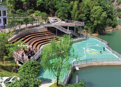 契合全民健身热潮,“塘河寻源”未来乡村充分利用山地、水库等资源,以特色专业体育项目带动乡村新流量,拓宽产业发展思路,带动乡村旅游新动能。毗邻大川村的瞿源村,这几年就因体育项目打响了知名度。村里的体育地标——铁人三项基地,已建成8000平方米水上休闲基地,以及相应配套的游泳竞赛区、自行车赛道区、长跑赛道区,是温州铁三协会打造的永久性项目基地,可提供常态化培训。通过“旅游+运动”引流,瞿源村成为户外运动爱好者的“打卡地”,每日随处可见跑步、健走的群众。