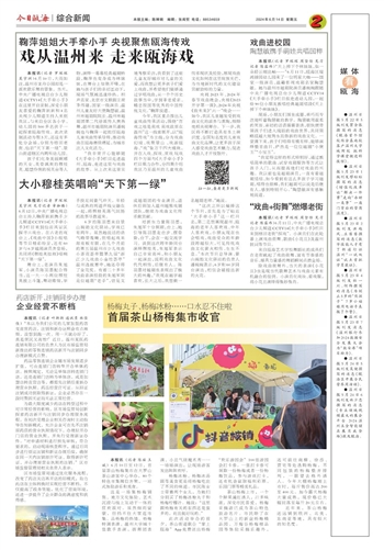本报讯(记者 罗琛琛 周坚任 见习记者 陈露玮)6月11日,中央广播电视总台少儿频道CCTV14《大手牵小手》栏目来到梧田老街“探戏”。小演员们在此轮番上演戏曲街舞、歌曲《小花旦》及温州鼓词等节目。