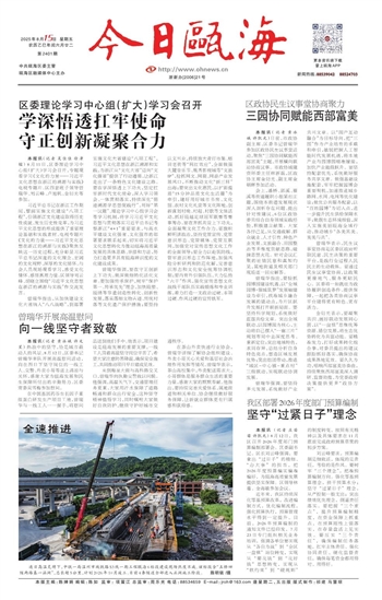曾瑞华强调,要坚持多元发展,系统做好产业共兴文章。以“园产互动融合”为目标导向,把“三园”作为产业培育的承载和牵引,敏锐把握人工智能时代发展机遇,将本地产业与园博园精准嫁接,加快产业能级跃升。要坚持配套优先,系统做好服务共享文章。做强基础设施配套,牢牢把握园博会重要契机,加速推进城乡路网、水网、电网等优化建设;做优公共服务配套,以“百姓园博”为切入点,进一步提升民生供给保障水平;做靓生态环境颜值,深入实施美丽瓯海全域行动,推动城乡“各美其美、美美与共”。